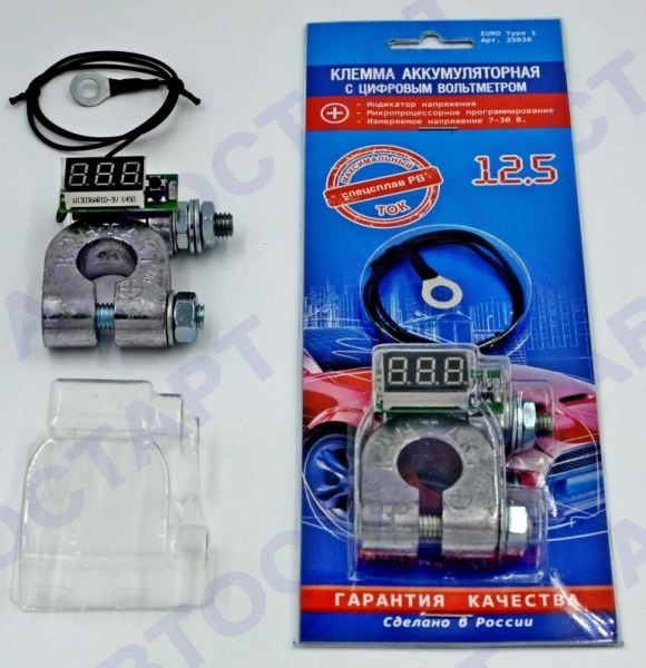 Клемма акб КОНТАКТ с вольтметром